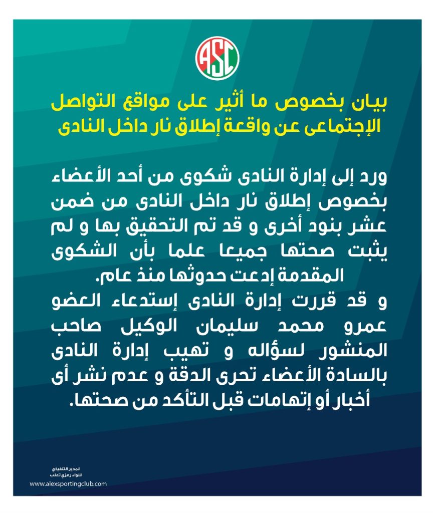 و قد قررت إدارة النادى إستدعاء العضو عمرو محمد سليمان الوكيل صاحب المنشور لسؤاله