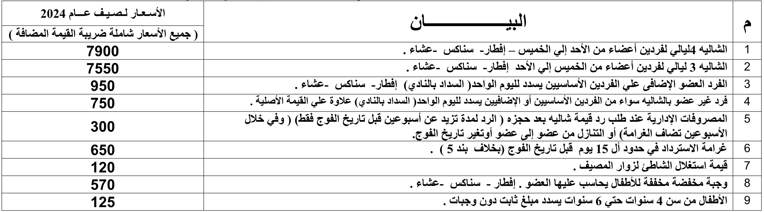 - إستلام الإيصالات الخاصة بإشتراك المصيف تبدأ إعتباراً من الثلاثاء الموافق2024/06/11 .