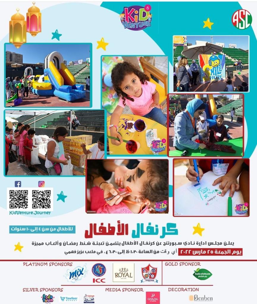 يعلن مجلس إدارة النادي عن كرنفال للأطفال بملعب عزيز فهمي يوم الجمعة ٢٥ مارس من الساعة ١.٣٠ ظ وحتى الساعة ٦.٣٠ م للأطفال من ٤ وحتى ١٠ سنوات