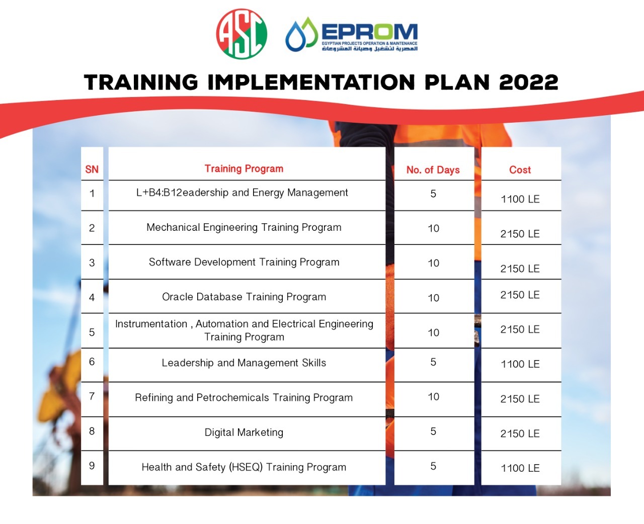 يقدم مجلس إدارة النادي ولجنة ريادة الأعمال بالتعاون مع شركة EPROM للسادة الأعضاء وشباب النادي العديد من الدورات التدريبية الهامة وذلك للحصول على أحدث المهارات الأساسية في مجال الصناعة بشكل عام وفي مجال البترول والغاز بشكل خاص