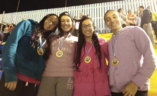 كما استطاع فريق 2001 بنات تحقيق المركز الثالث و الميدالية البرونزية فى سباق تتابع 4*100 متر حرة