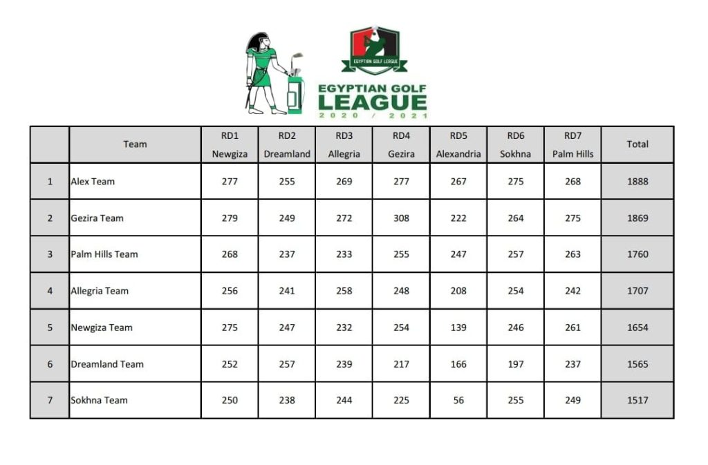 فاز فريق نادي سبورتنج بدرع دوري الجولف وذلك بعد إنتهاء الجولة السابعة والأخيرة التي أقيمت على ملاعب نادي بالم هيلز بالقاهرة