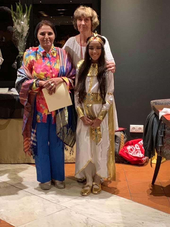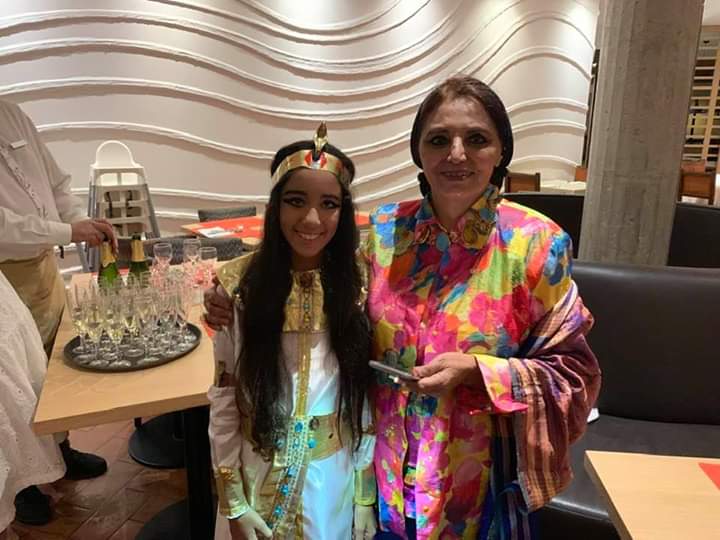 مديرة المرسم المهندسة نادية قنديل والطالبة زينة أحمد فتحي لحضور ورشة فنية عالمية بها وفود من