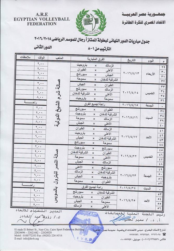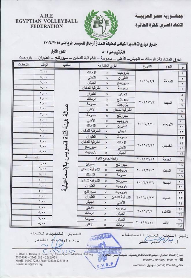 الممتاز أ للموسم الرياضي ٢٠١٥/٢٠١٦ للترتيب من ١ وحتى ٨ بملاقاة نادي الجيش يوم