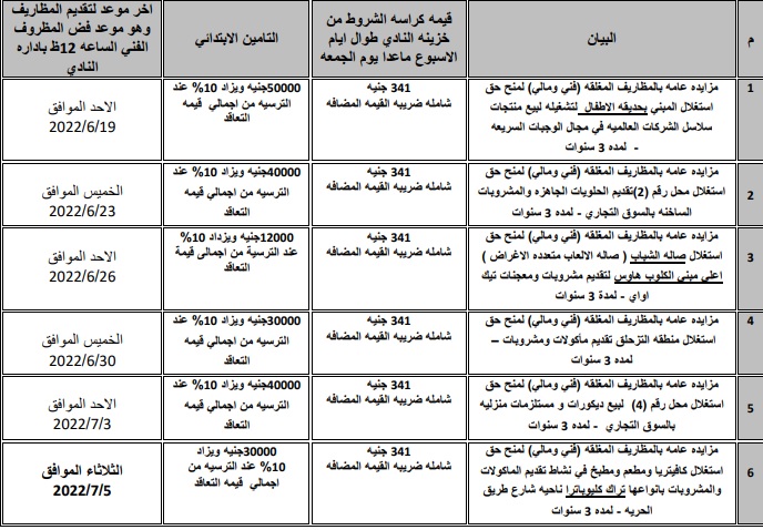 يعلن نادي الأسكندرية الرياضى سبورتنج عن طرح المزايدات الأتيه