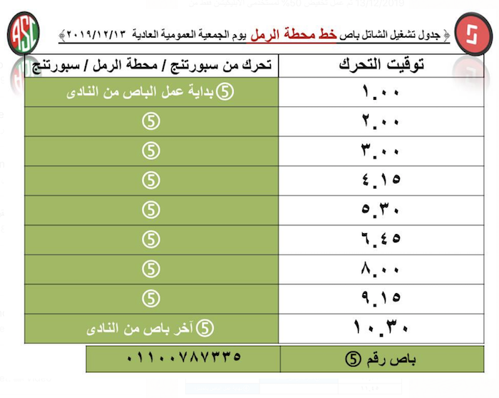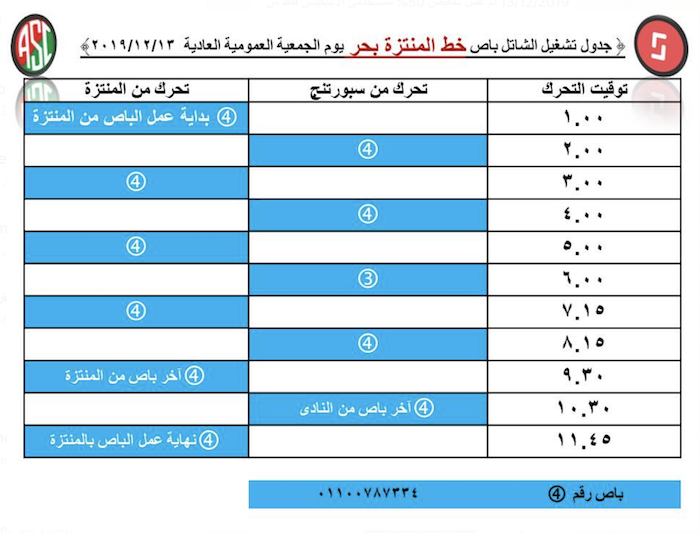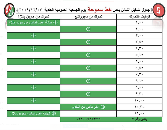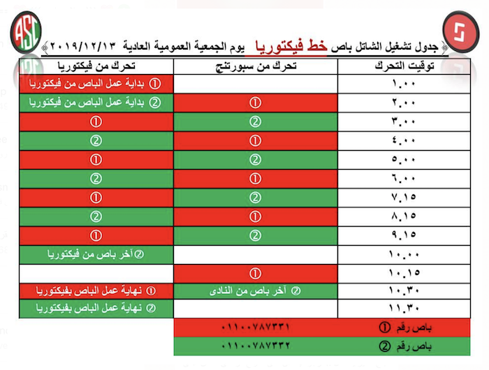 كل ما يتعلق بالشاتل باص يوم الجمعية العمومية ١٣ ديسمبر