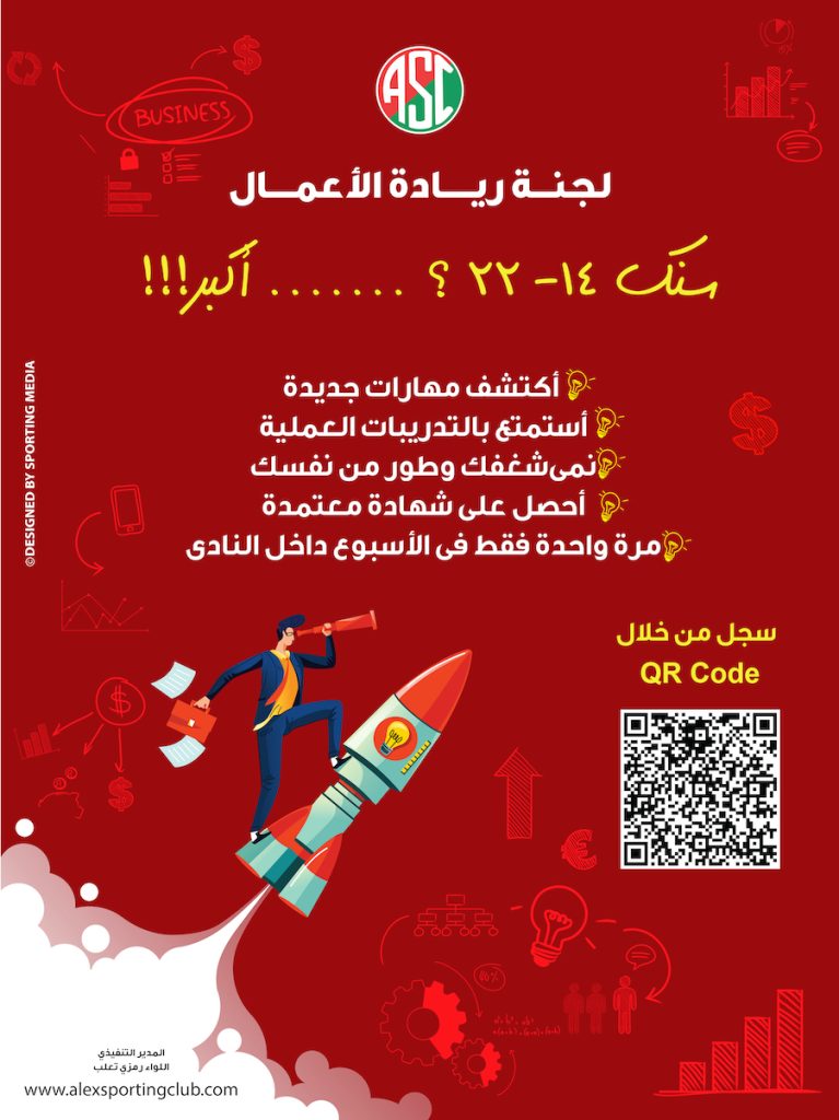 يعلن مجلس إدارة نادي سبورتنج ولجنة ريادة الأعمال عن برامج لجنة ريادة الأعمال بنادي سبورتنج لشباب النادي