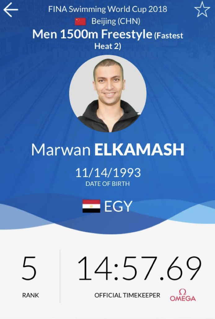 نجح سباح نادي سبورتنج الأوليمبي مروان القماش و لاعب منتخب مصر في الحصول على المركز الخامس