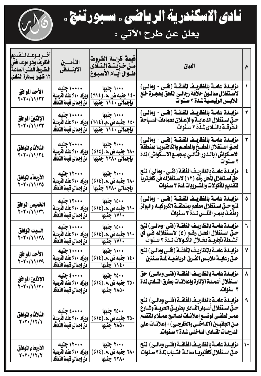 يعلن نادي سبورتنج عن طرح المزايدات التالية :