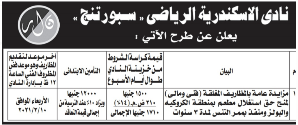 يعلن نادي سبورتنج عن طرح المزايدة التالية :