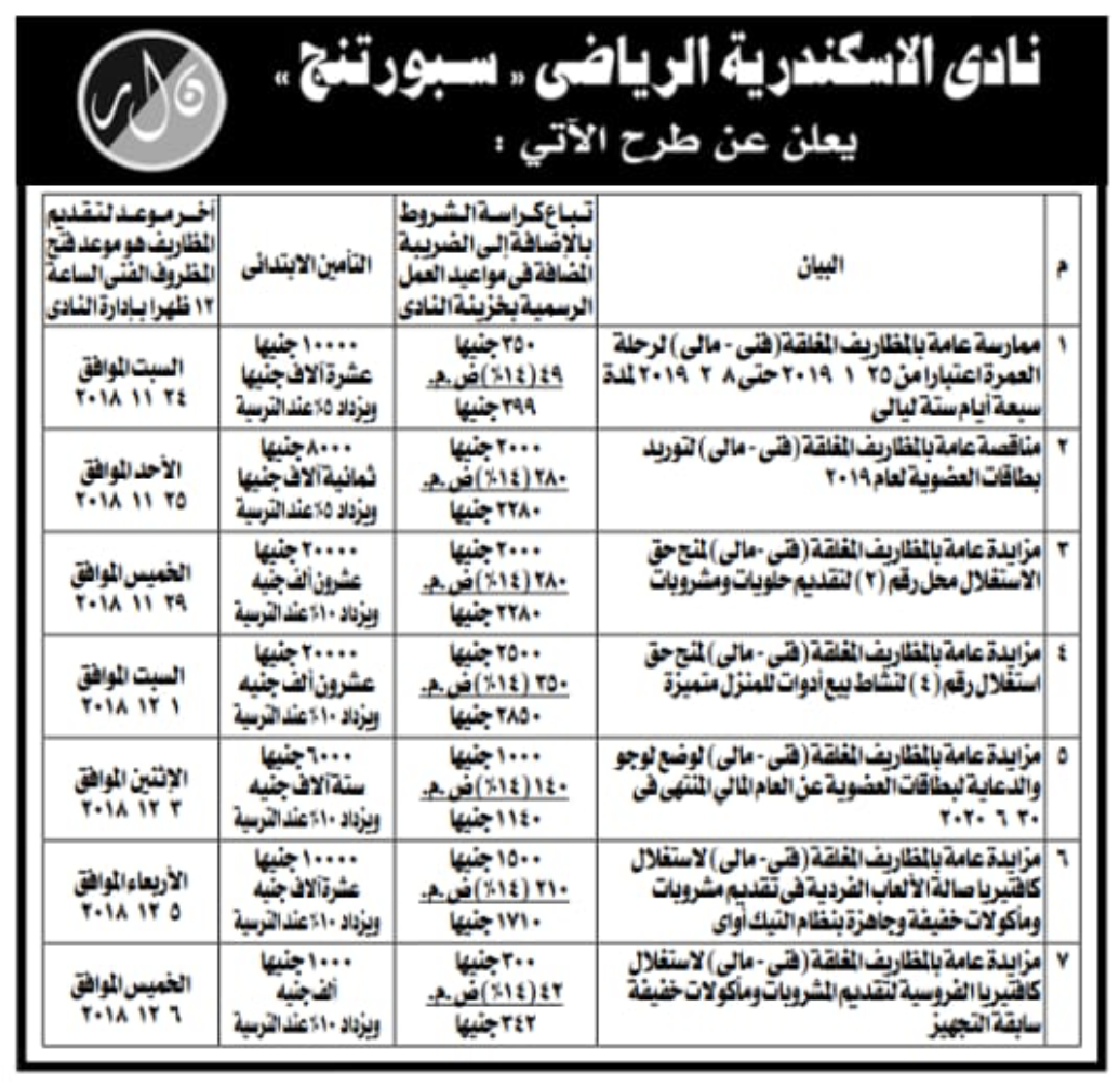 يعلن نادي سبورتنج عن طرح بعض المناقصات والمزايدات العامة المختلفة