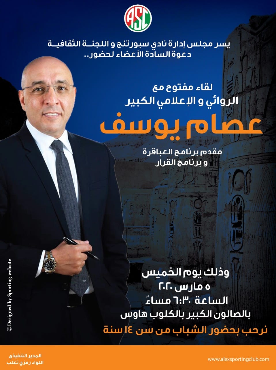 ندوة للكاتب والمذيع ” عصام يوسف “