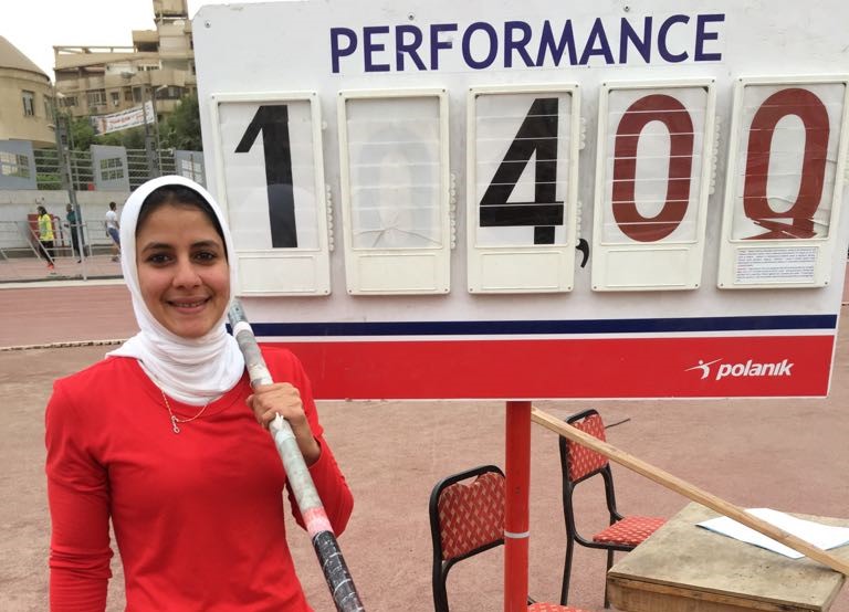 فاطمة البنداري بطلة الجمهورية في القفز بالزانة لأول مرة في تاريخ سبورتنج