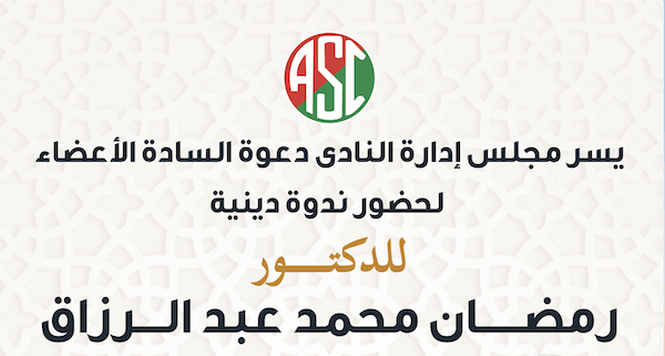 ندوة للدكتور رمضان عبد الرزاق يوم الخميس ٧ مارس
