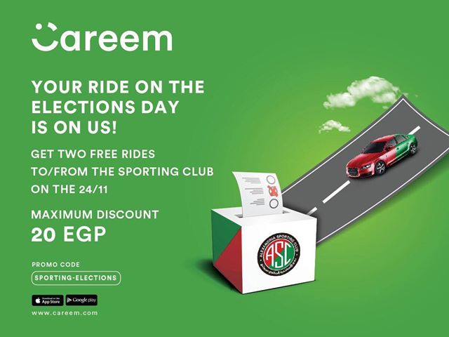 خصم ٥٠٪ لاعضاء نادي سبورتنج من شركة كريم يوم الانتخابات