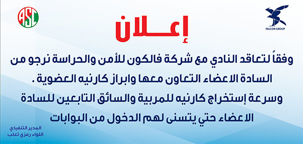 هام للسادة الاعضاء | بخصوص التعاقد مع شركة الأمن الجديد لحراسة البوابات