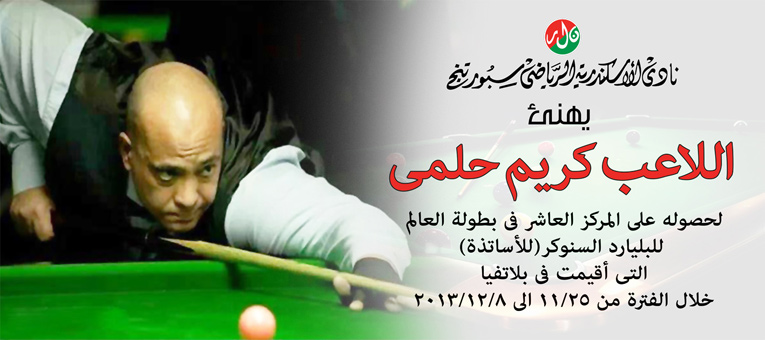 فى اطار بطولة كأس مصر للبلياردو الفرنسى ثلاث اضلاع استطاع فريق سبورتنج