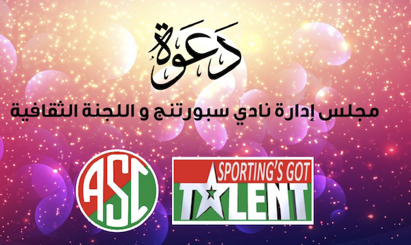 دعوة لحضور الحفل النهائي من مسابقة Sporting’s Got Talent 2019