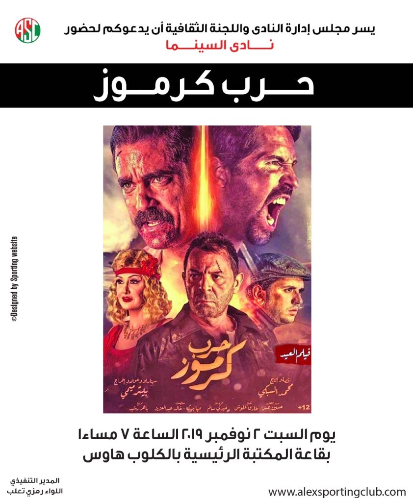 السبت 2 نوفمبر نادي السينما مع فيلم ” حرب كرموز “