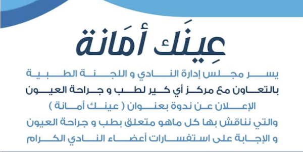ندوة طبية بعنوان عينك أمانة الجمعة ١٥ مارس