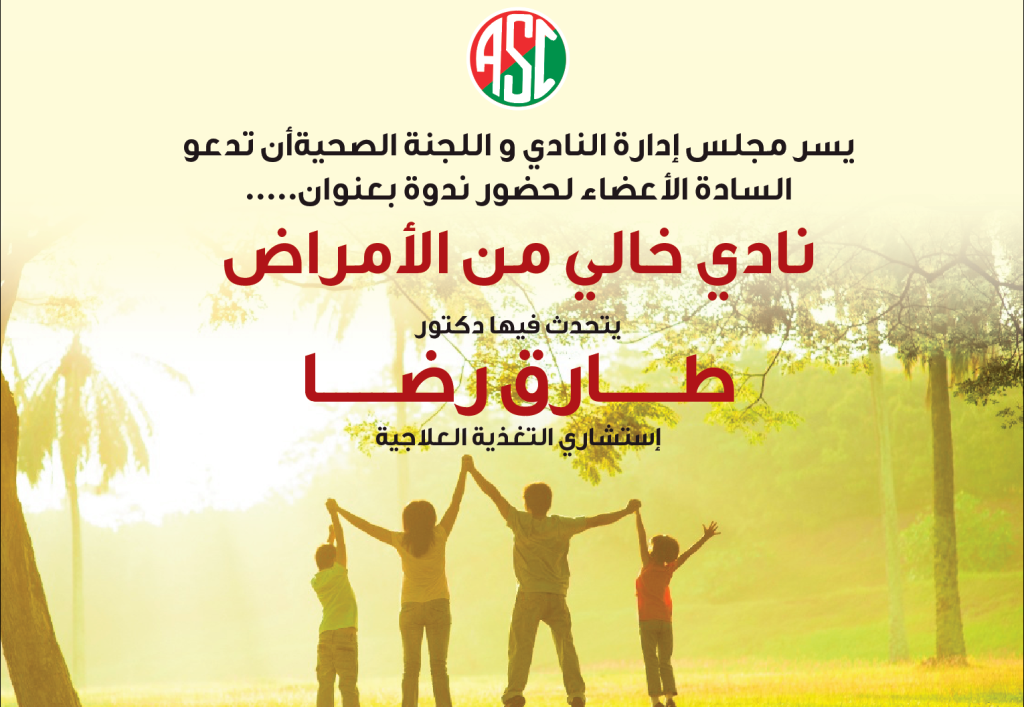 ندوة بعنوان “نادي خالى من الأمراض ” يوم 9 / 2 / 2018