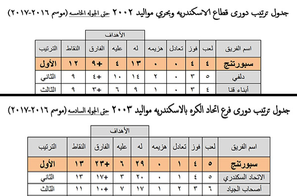 كرة قدم | سبورتنج ٢٠٠٢ و٢٠٠٣ يتصدروا ترتيب دوري القطاعات والمنطقة