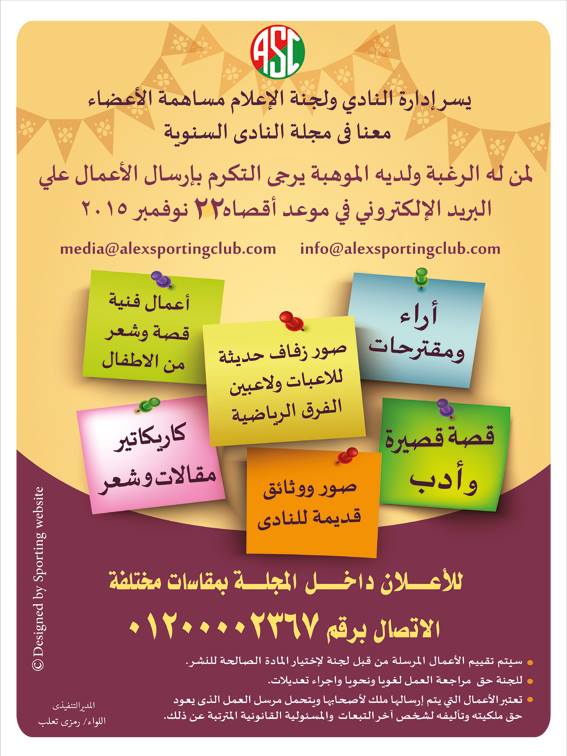 يسر مجلس إدارة النادي ولجنة الإعلام إستقبال مساهمة الأعضاء معنا في مجلة النادي