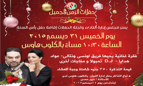 يسر مجلس إدارة النادي ولجنة الحفلات إقامة حفل رأس السنة اليوم