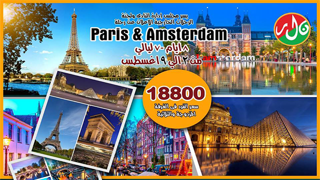 رحلة إلى باريس و أمستردام لمدة 8 أيام بتاريخ 2 أغسطس