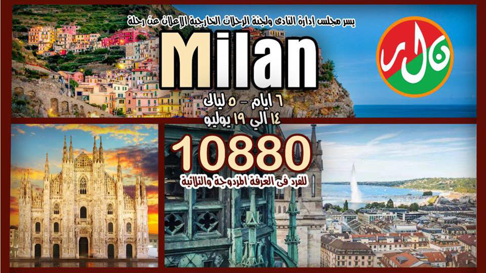 رحلة إلى ميلان لمدة 6 أيام بتاريخ 14 يوليو 2019