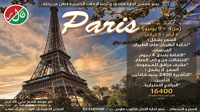 رحلة إلى باريس بتاريخ 4 يونيو لمدة 6 أيام