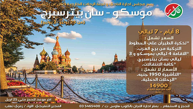 رحلة إلى موسكو – سان بيترسبرج بتاريخ 25 يونيو لمدة 8 أيام