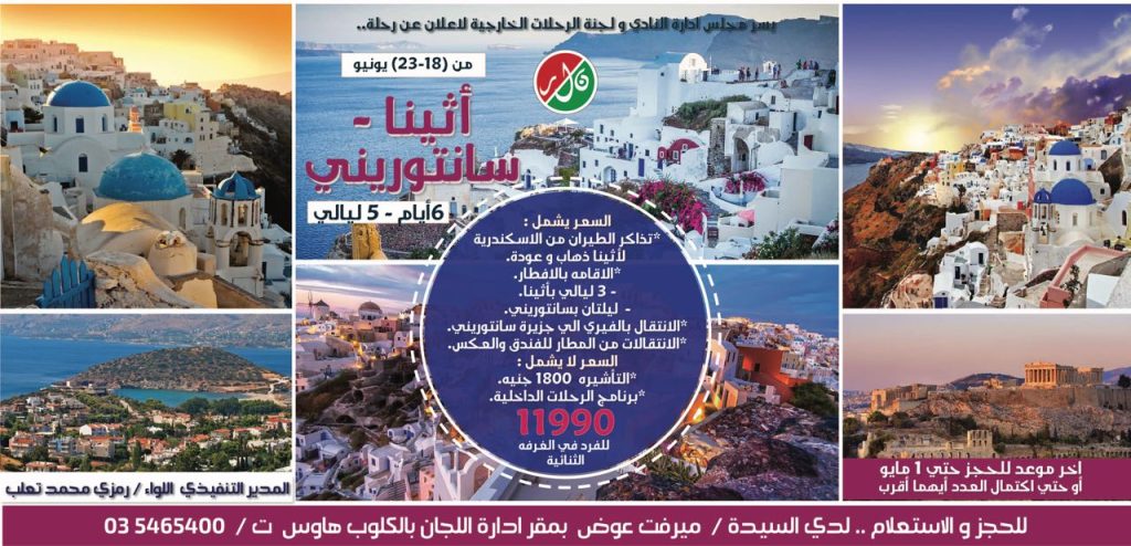 رحلة 6 أيام إلى أثينا – سانتوريني بتاريخ 18 يونيو 2018