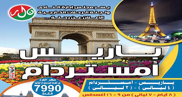 يسر مجلس إدارة النادي و لجنة الرحلات الخارجية الإعلان عن