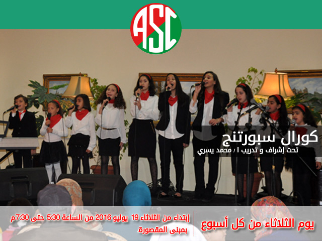 تقام إحتفالية غنائية يحييها كورال سيد درويش بنادى سبورتنج و الذى