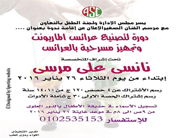 يعلن مرسم الفنان الصغير بالنادى عن القيام بعمل ورشة لتزيين شجرة