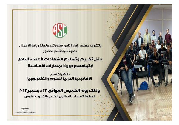 دعوة لحضور حفل تكريم إتمام دورة المهارات الأساسية للجنة ريادة الأعمال