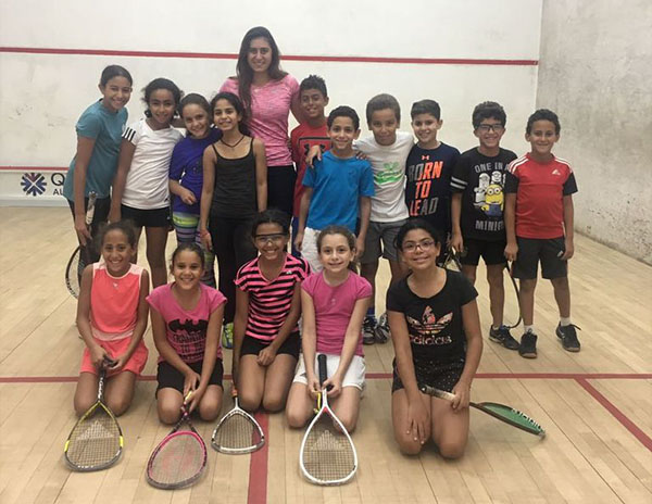 بطلة العالم في الاسكواش تشارك لاعبي ناشئين سبورتنج التدريبات