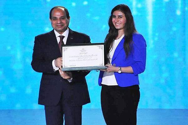 السيسي يكرم نجمة النادى نور الشربيني