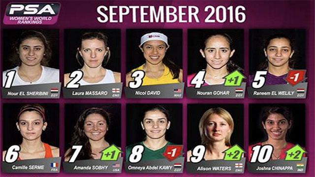 نور الشربيني تحافظ على صدارة التصنيف الدولي للأسكواش