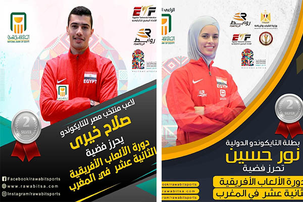 تألق نور حسين وصلاح خيري مع المنتخب الوطني بالبطولة العربية للتايكوندو