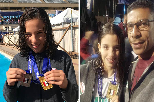 نائلة العجرودي تحصل على ذهبية وملك ناجي ذهبية وفضية ببطولة الجمهورية للسباحة تحت ١١ سنة