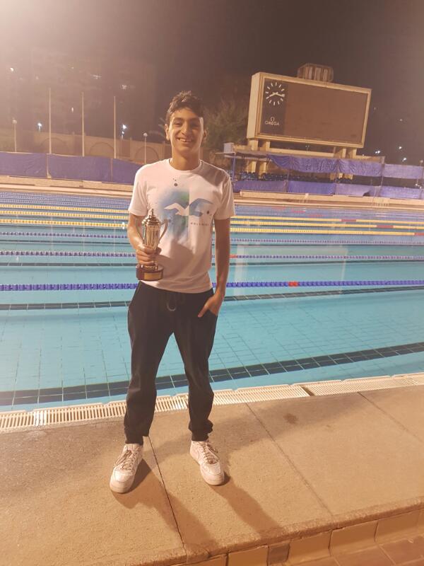 عمر منيسي يحصل علي كأس احسن رقم ببطولة كأس مصر للسباحة