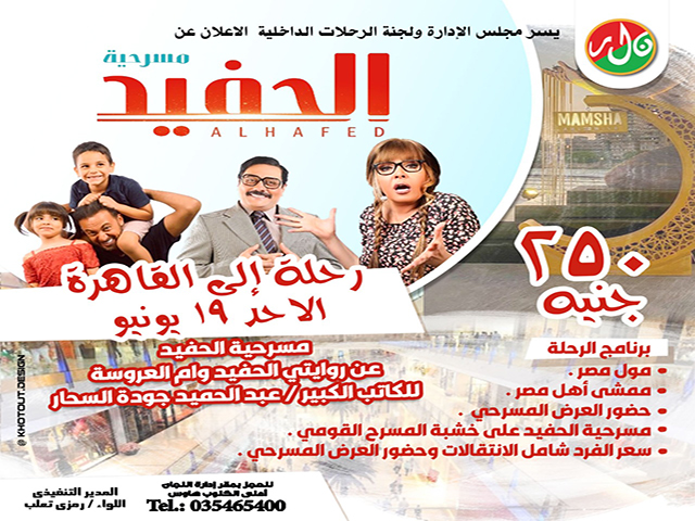 رحلة إلى القاهرة لحضور مسرحية الحفيد بتاريخ 19 يونيو