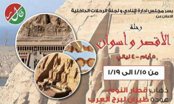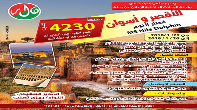 رحلة إلى الأقصر و أسوان بتاريخ 22 يناير 2018