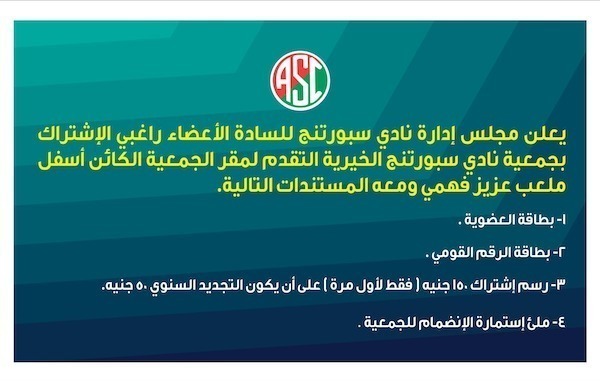 تعرف على كيفية الإشتراك بجمعية نادي سبورتنج الخيرية
