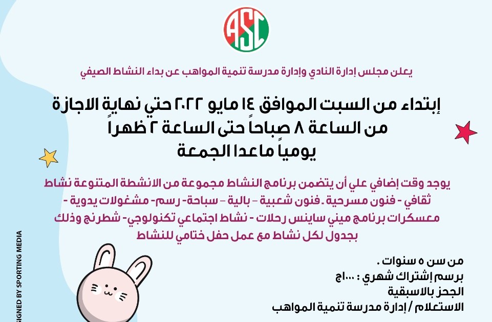 مدرسة تنمية المواهب تعلن عن فتح نشاط نصف العام