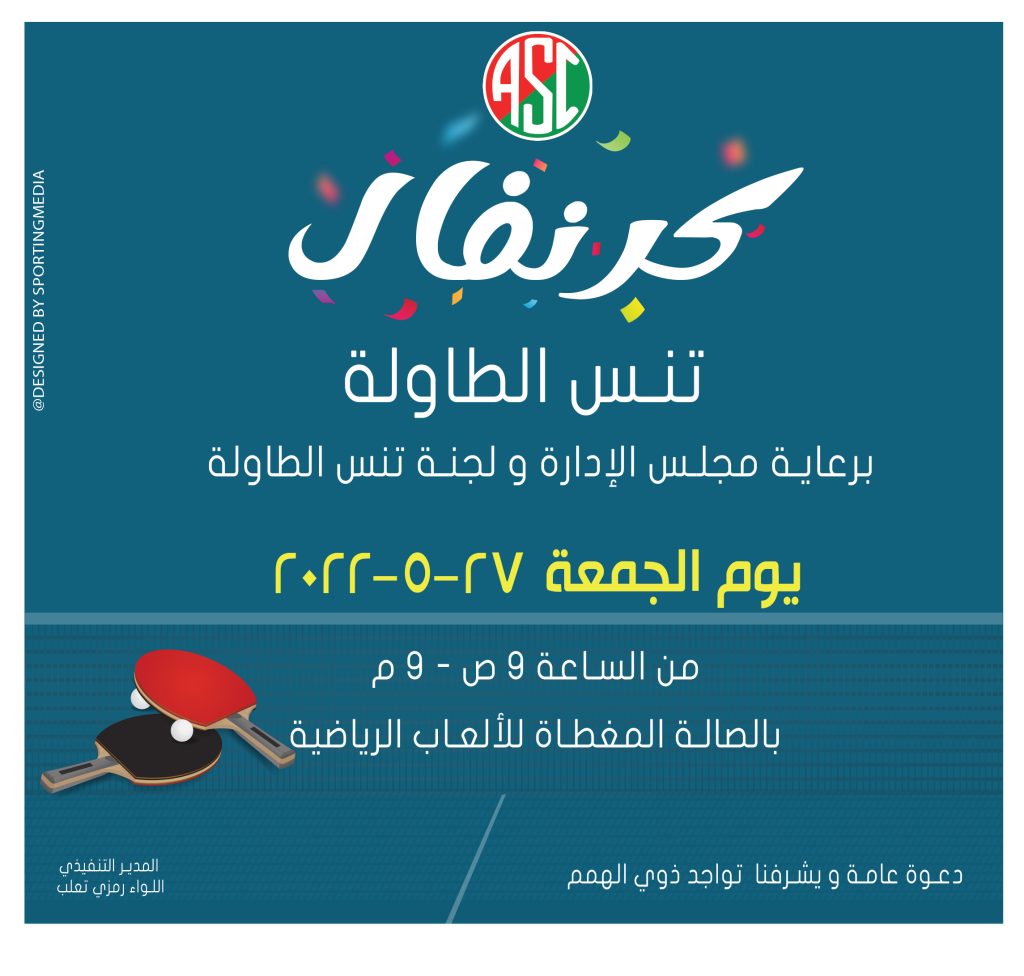 كرنفال تنس الطاولة بالنادي يوم 27 مايو